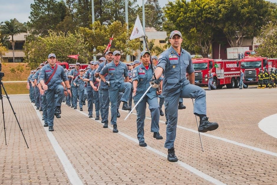 Building upon basic movements‚ formation drills emphasize unit cohesion and responsiveness. Common formations include line‚ column‚ and wedge‚ each serving distinct tactical purposes.